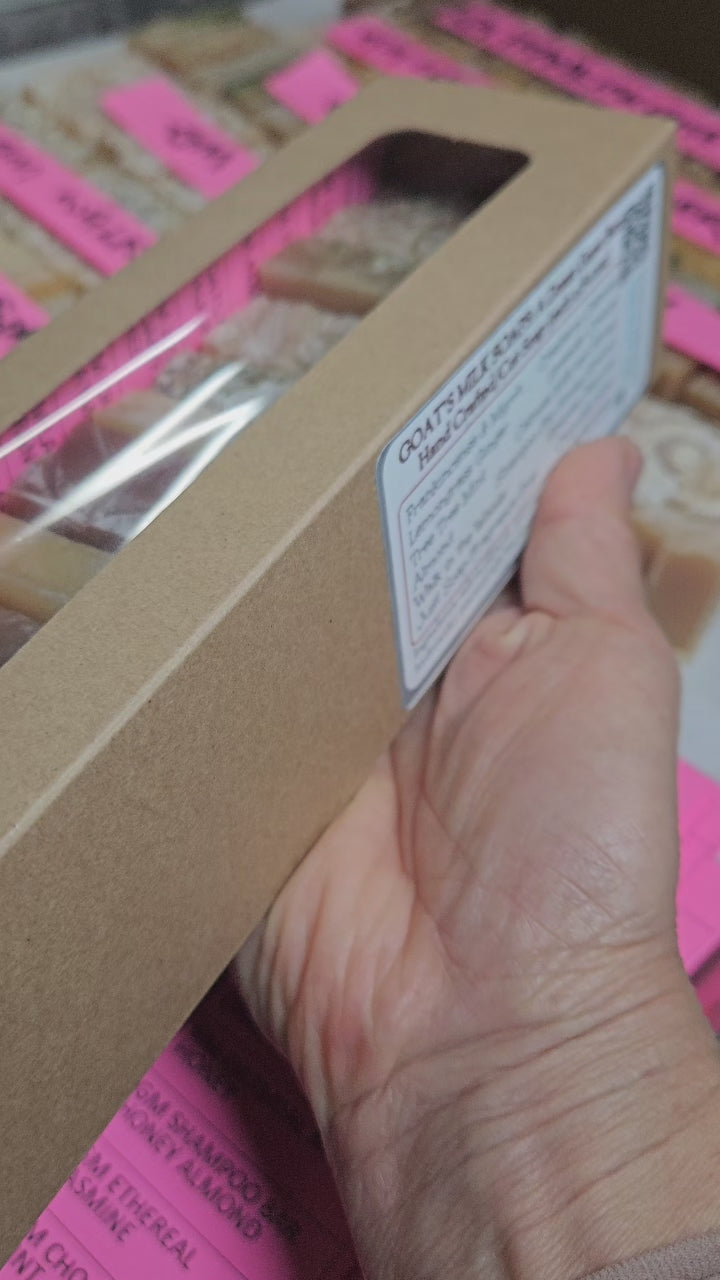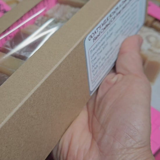A delightful window box of twelve mini 0.8-1.2 oz (average 12-14 oz total ) hand cut bars from my Goat's Milk Soap Collection.