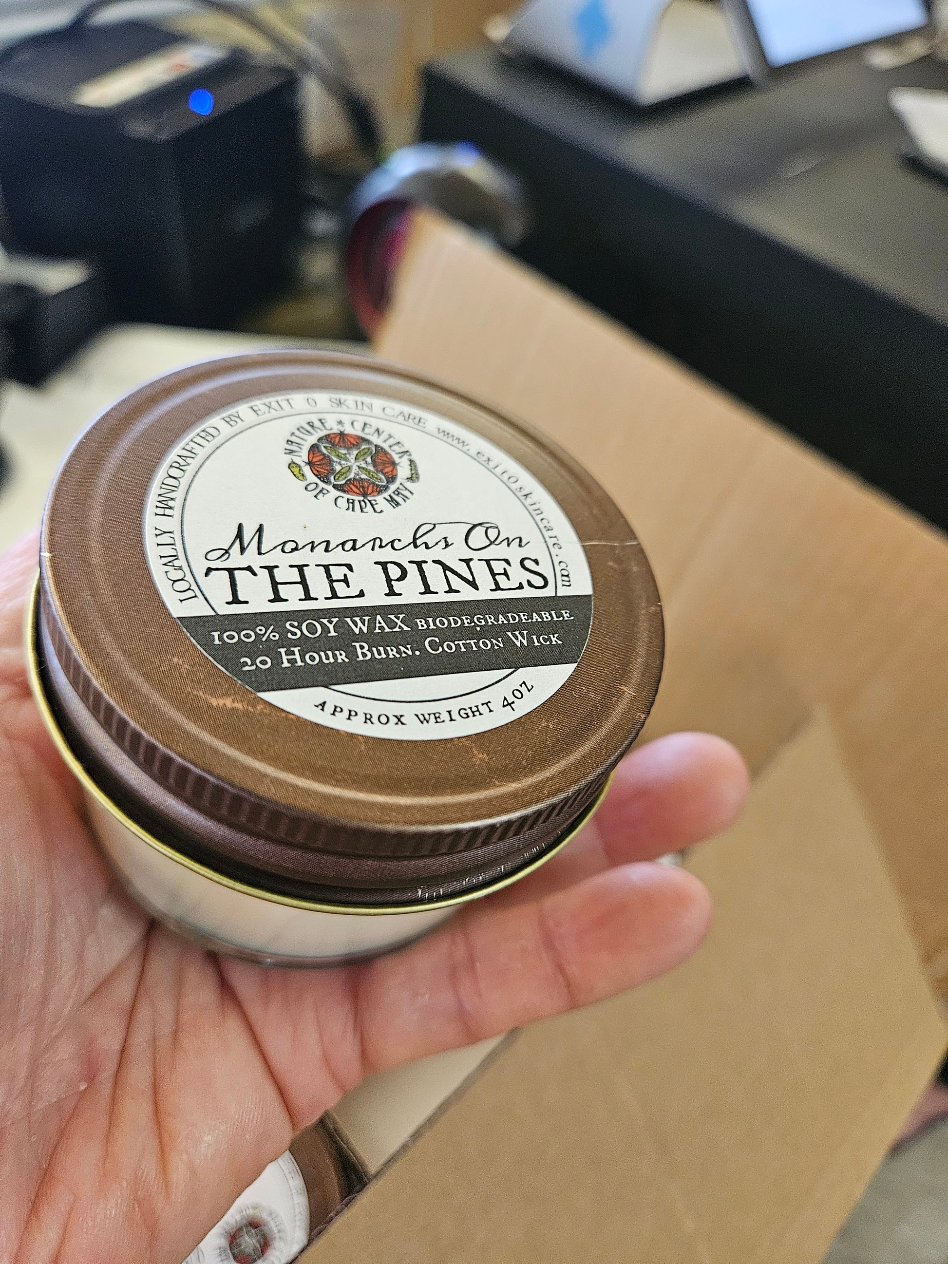 Wholesale only ~ Custom candle for Nature Center Cape May. The scent is Frasir Fir.