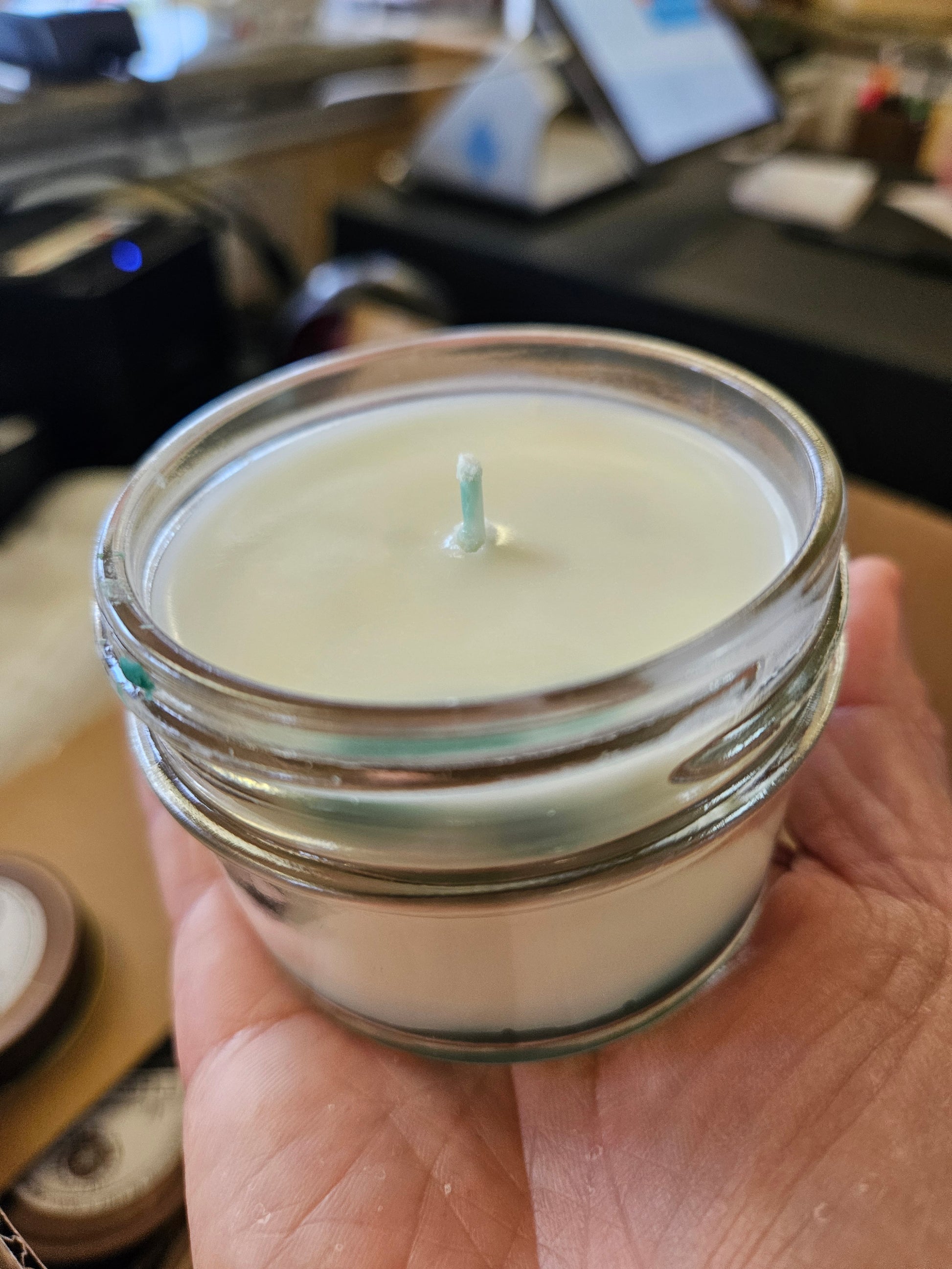 Hand poured into an 4oz reusable jelly jar, the candle is made with pure biodegradable soy wax candle with cotton wick.