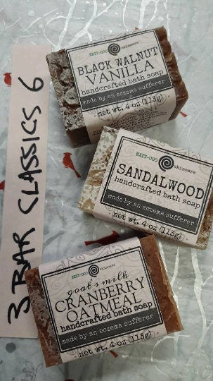 All 3 popular Soapmaker's Classic 4oz Soaps. A healthy gift of bounty, cheers and thanks.