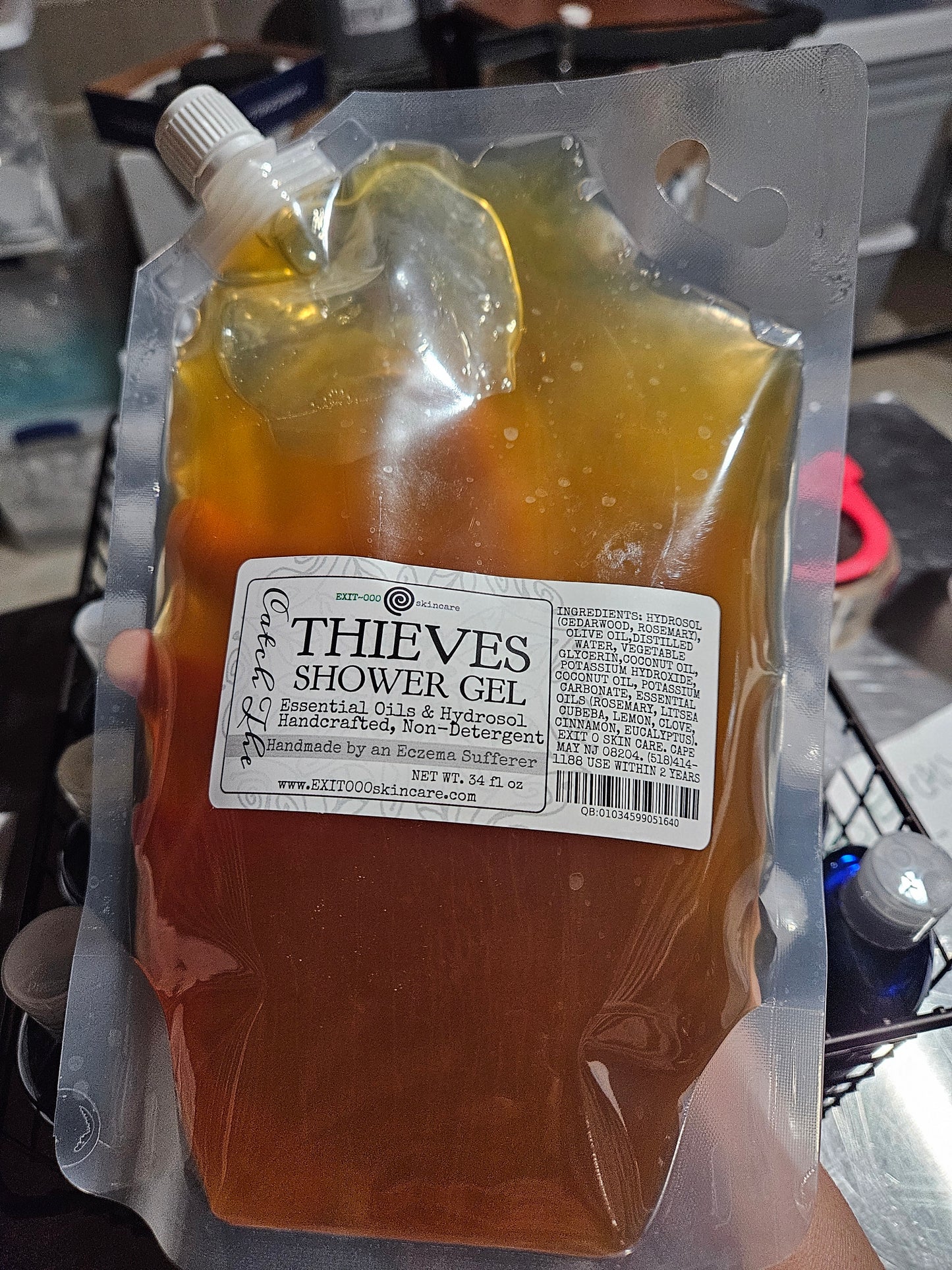 Building upon the popularity of my Catch the Thieves liquid and bar soaps, I made this fresh and mildly spicy unisex shower gel to join the collection. Saponifying olive & coconut (90/10) oils makes a gentle EVERYDAY shower gel. Non-detergent (SLS free), it will clean without drying you out, diluted with home distilled herbs (cedarwood & rosemary) hydrosol.