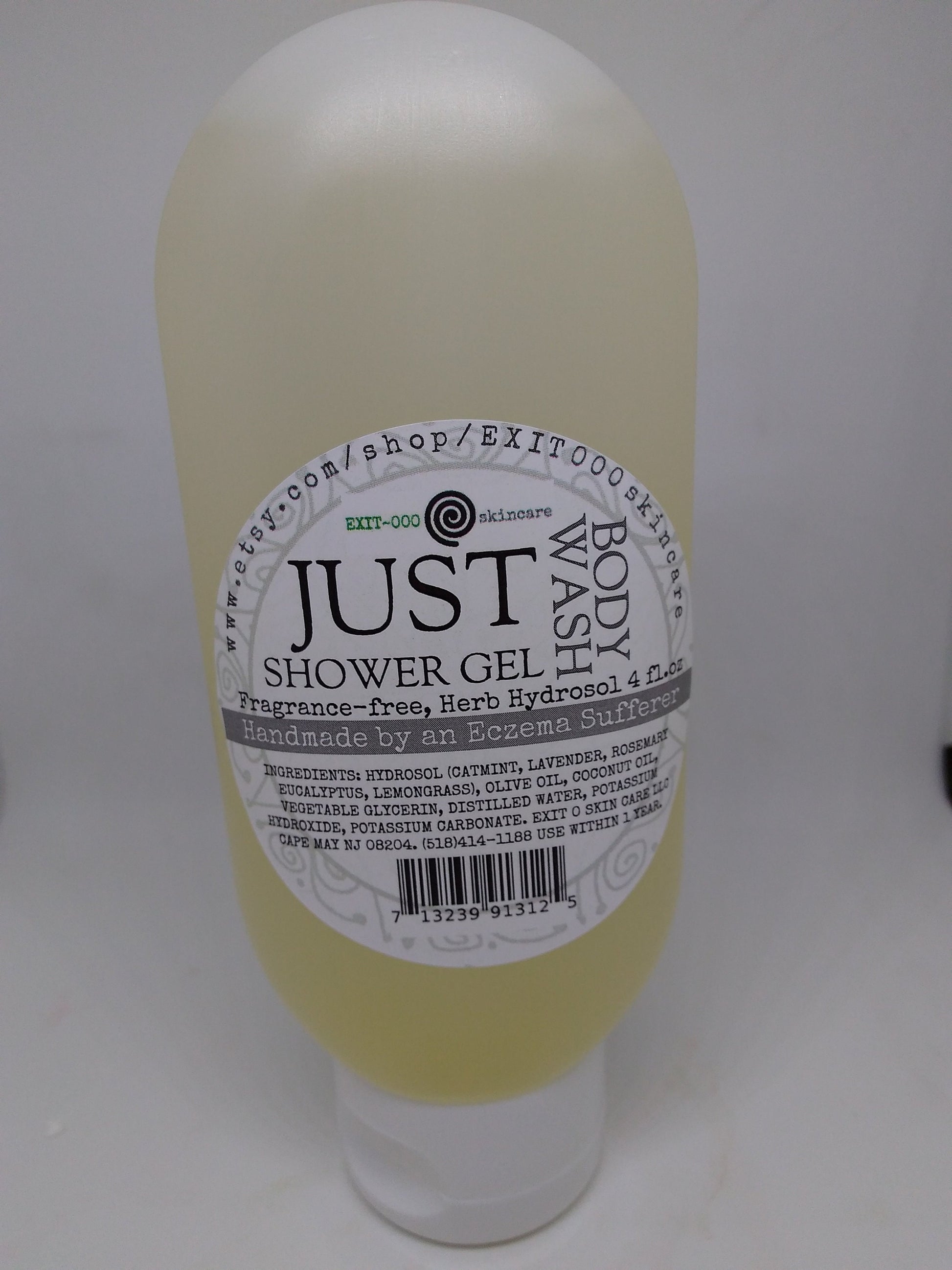 A gentle EVERYDAY shower gel. Handcrafted from olive (mainly) and coconut oils, diluted with herb hydrosol. There are no essential or fragrance oils added. Nothing is added to deodorize the scent of underlying ingredients. It will smell faintly of what it is made of.