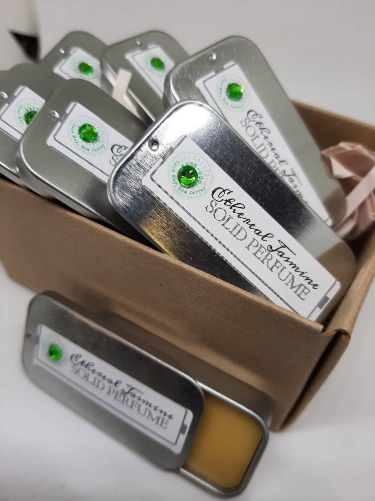 LIMITED AVAILABILITY! Elegant, delicate, simply beautiful. Not to Wow others, because this is truly natural. Just present enough for you to float your spirit on a bed of night blooming jasmine flowers. A portable SOLID natural perfume made from Indian Jasmine Floral Wax, ancient Indian technique of extracting the delicate scent of the blossom without boiling. 6 grams in a cute and handy sliding tin.