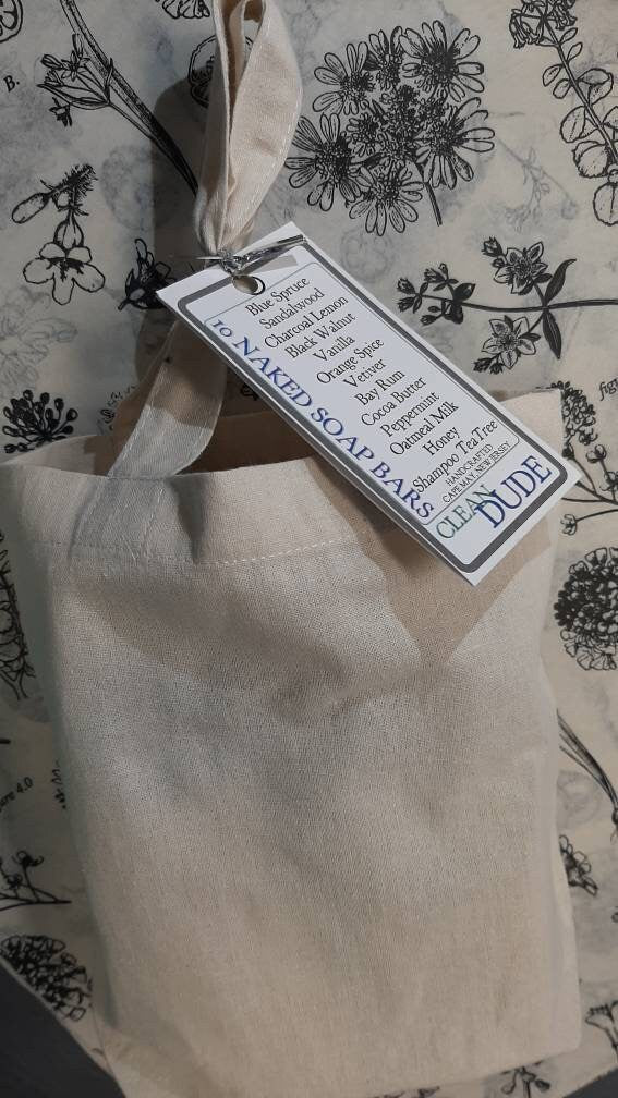 For a limited time, in a cotton canvas re-suable fabric bag. THE VIDEO SHOWS THE 10 NAKED FLORAL TOTE BARS to demonstrate how the naked bars are presented. Bars vary by soap collection.