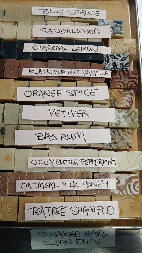 ALL 10 NAKED bestselling Men's favorites (including a BONUS shampoo bar) for less packaging, less labor, passing along more savings to you. 10 bars (3.5 TO 4.2oz approx) of cold processed soap, naked and unwrapped.