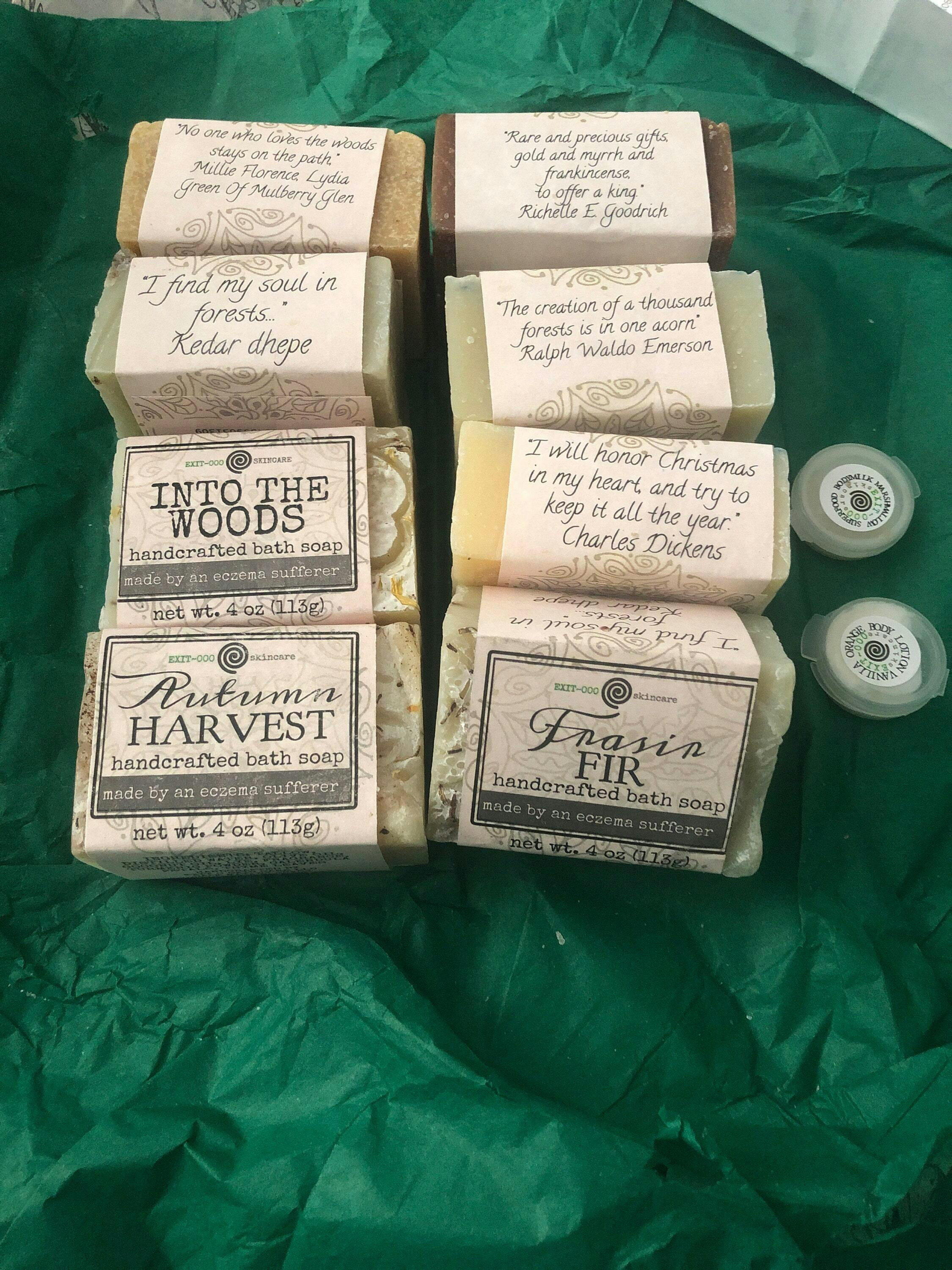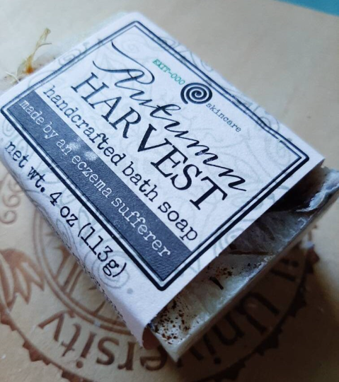 One 4 oz bar of cold processed soap, labeled.