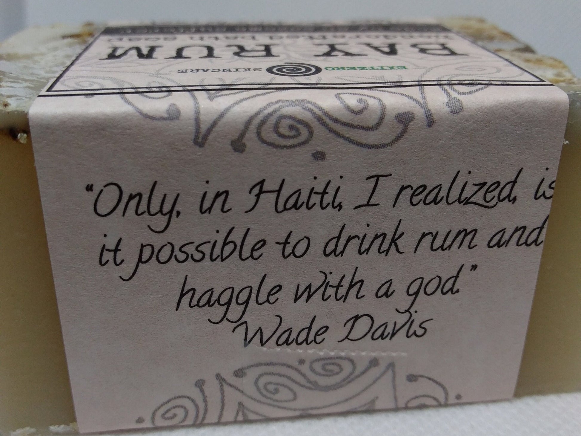 Think of sipping rum at a beach bar. Unisex bar. I used to call it a guy soap, but so many of my lady customers love it, it is now a unisex favorite. One 4 oz bar of cold processed soap, labeled.
