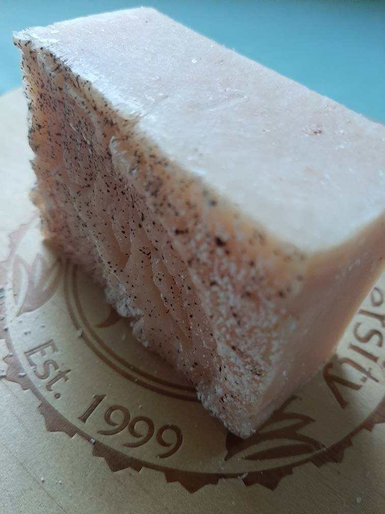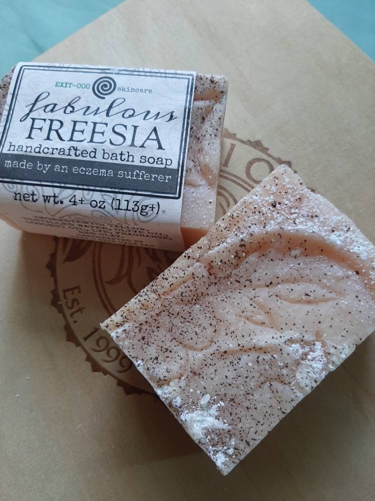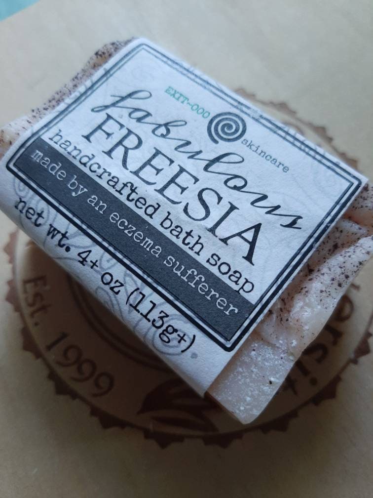 One 4 oz bar of cold processed soap, labeled.