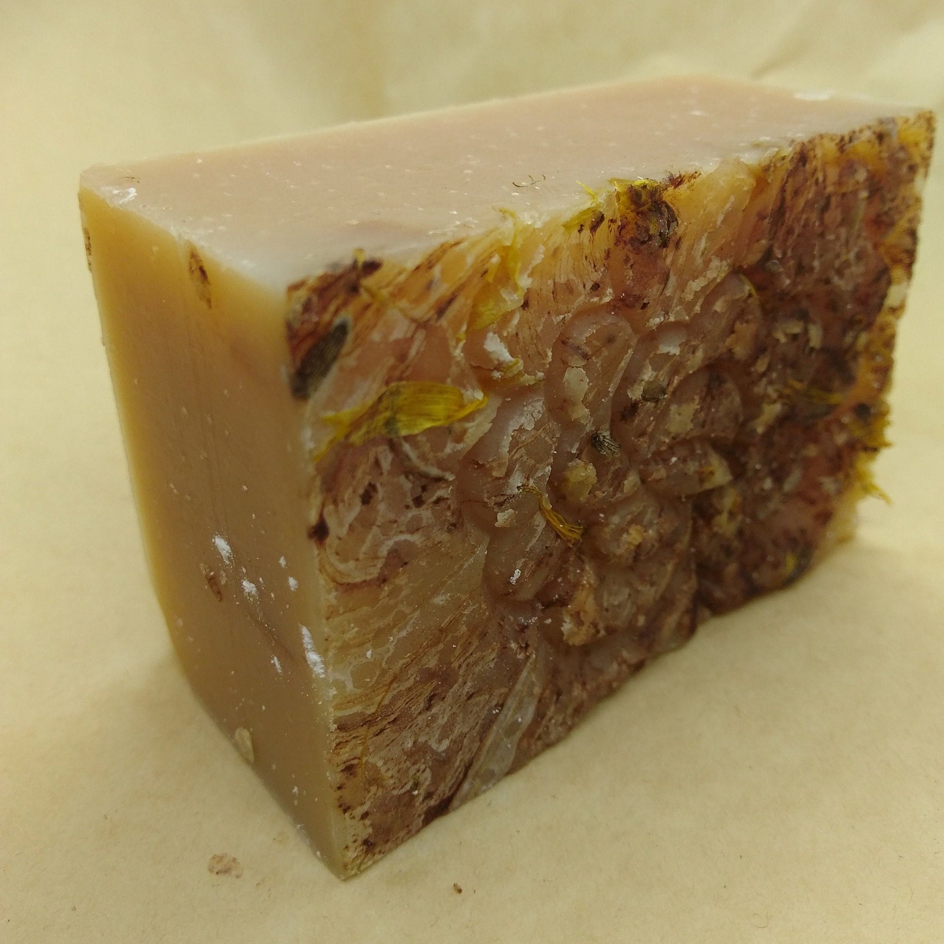 INGREDIENTS: TALLOW, DISTILLED WATER, OLIVE OIL, COCONUT OIL, LYE, ESSENTIAL OILS (SIBERIAN FIR, LITSEA CUBEBA, CEDARWOOD), THYME, SPIRULINA, CALENDULA, CINNAMON.