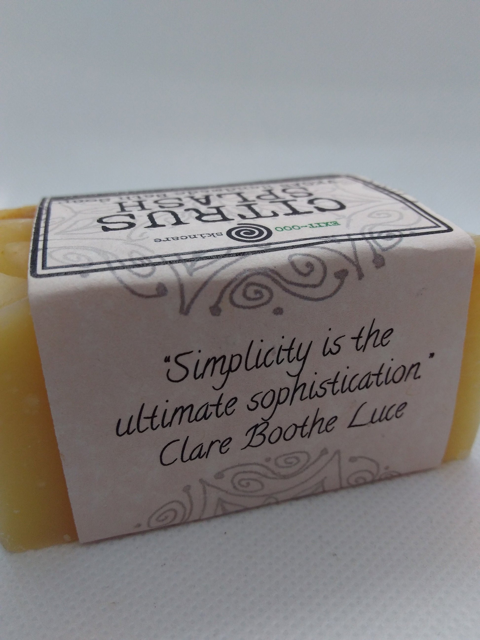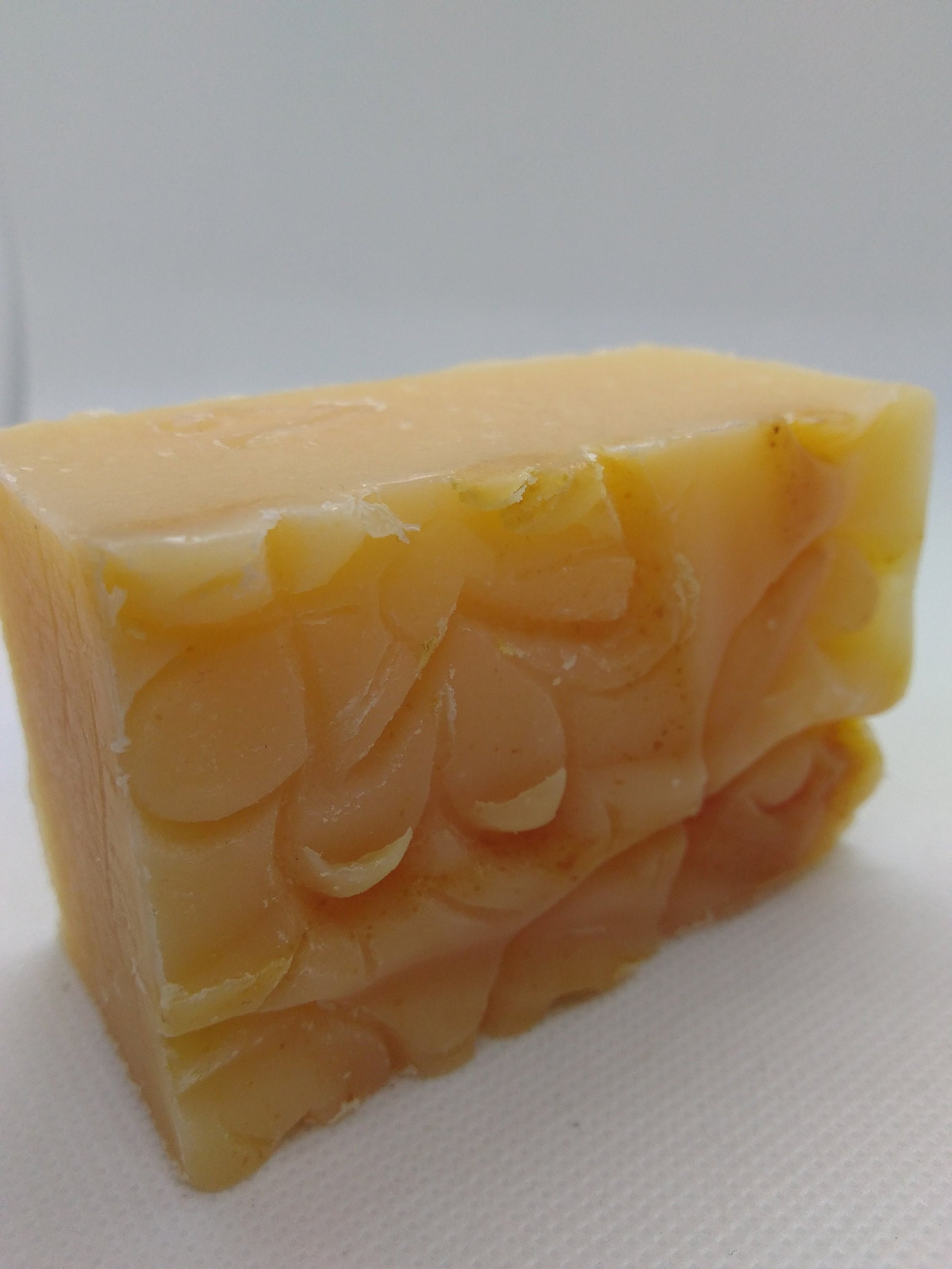 A mildly scented lemony grapefruit vegan bar. One 4 oz bar of cold processed soap, labeled.