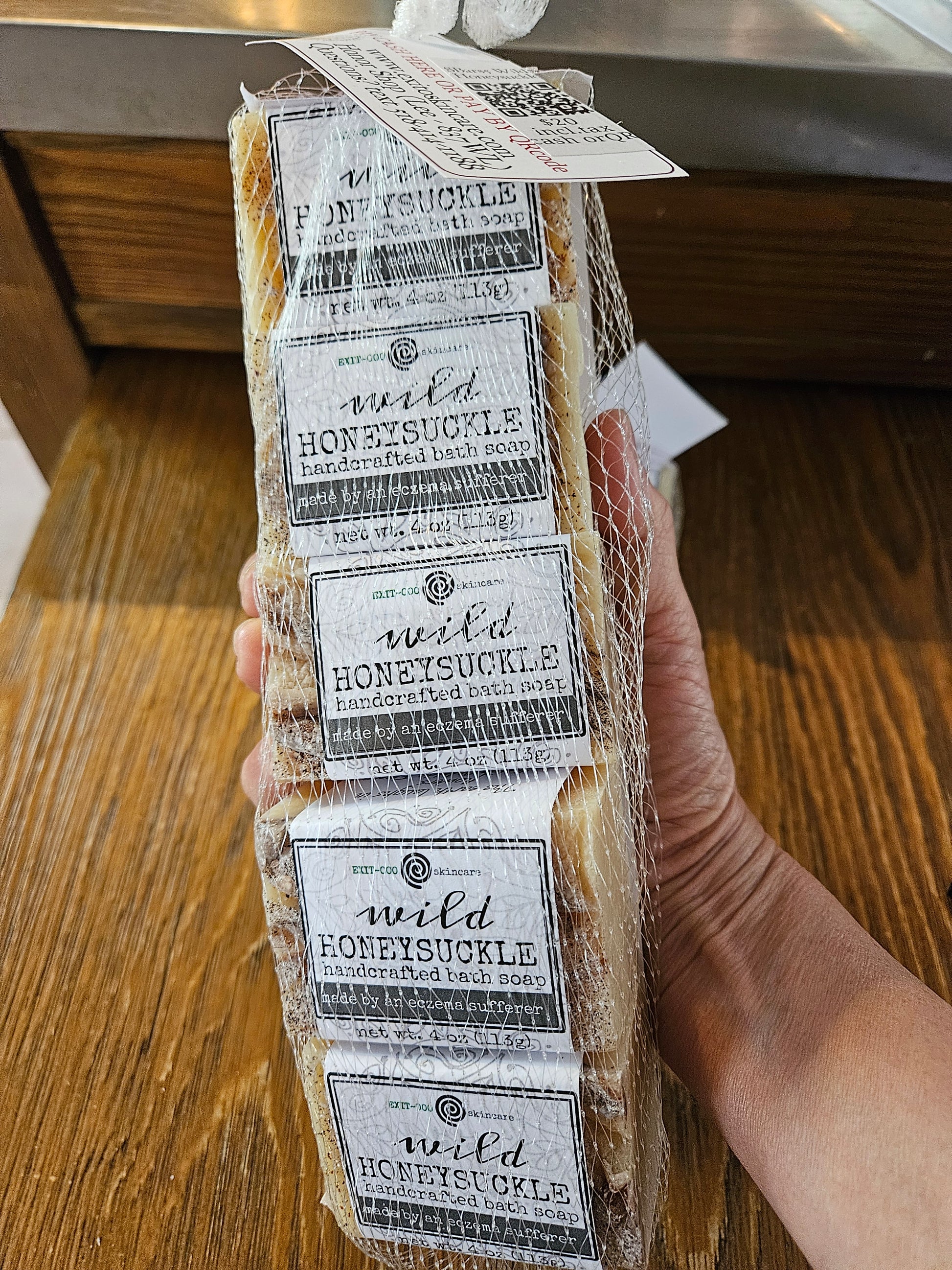 Light floral, with mild fruity tone. Each of 5 bars 4 oz bar of cold processed soap, labeled.